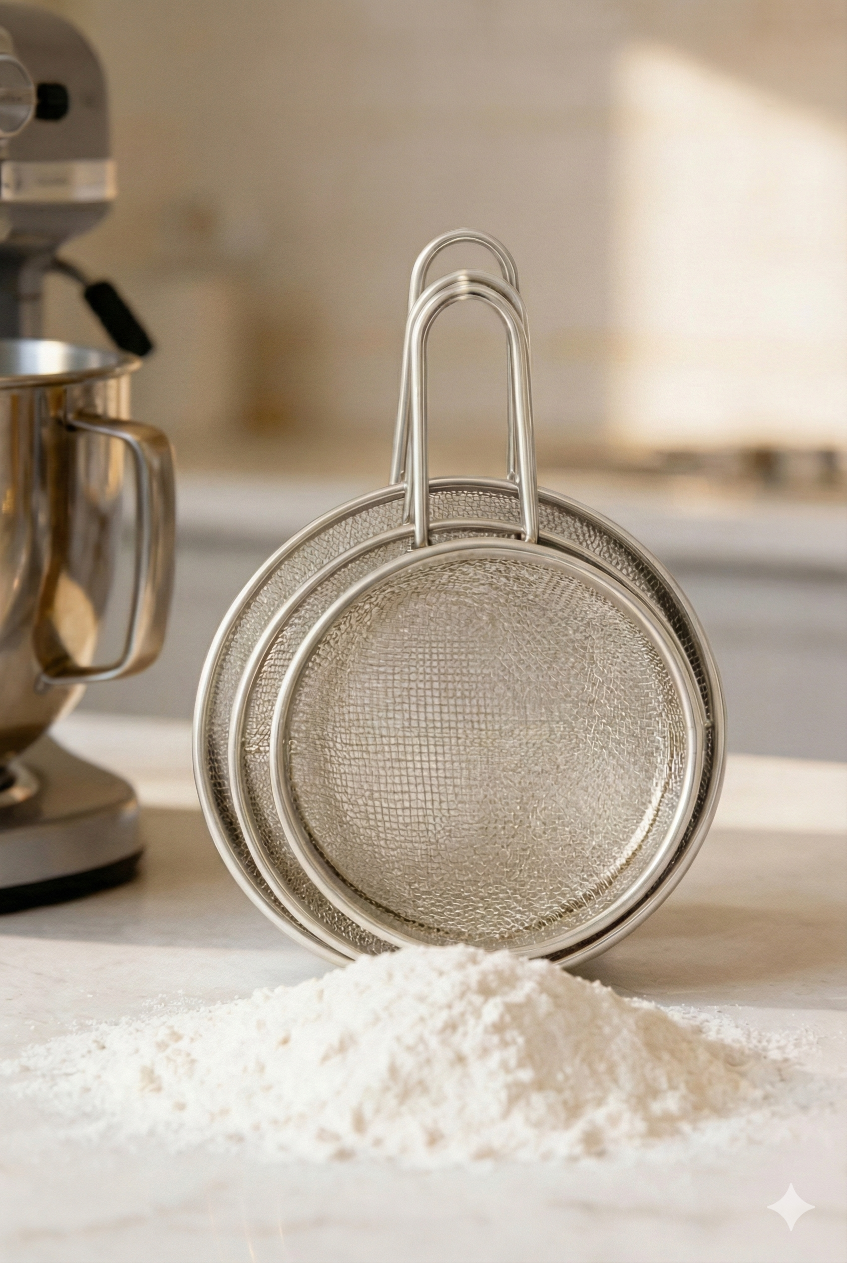 İnce Tel Yapısı: Pürüzsüz bir eleme sağlar; un, pudra şekeri ve kakao gibi malzemeler için idealdir.