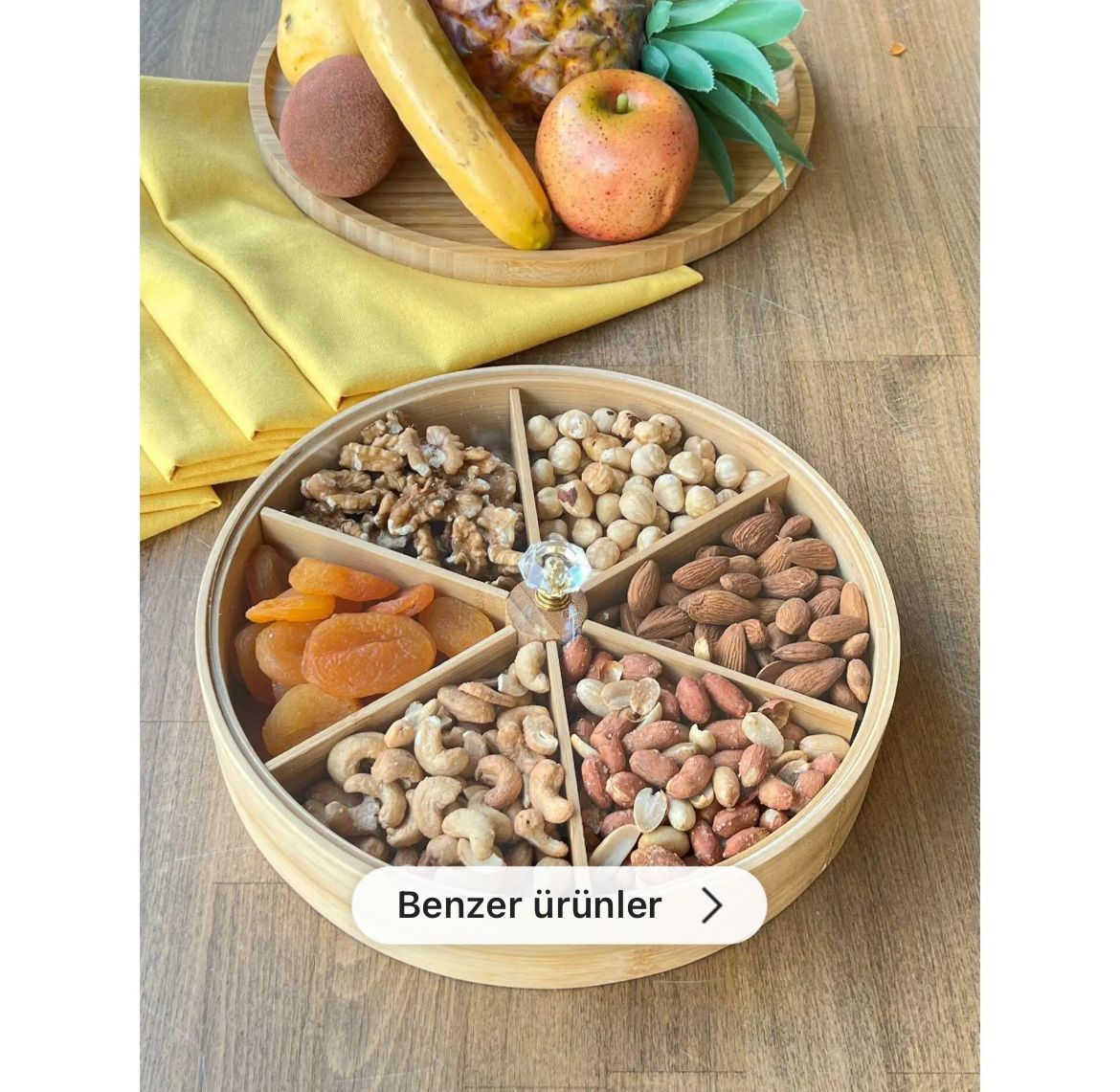 Bambu Çerezlik Cam Kapaklı 3 Bölmeli
