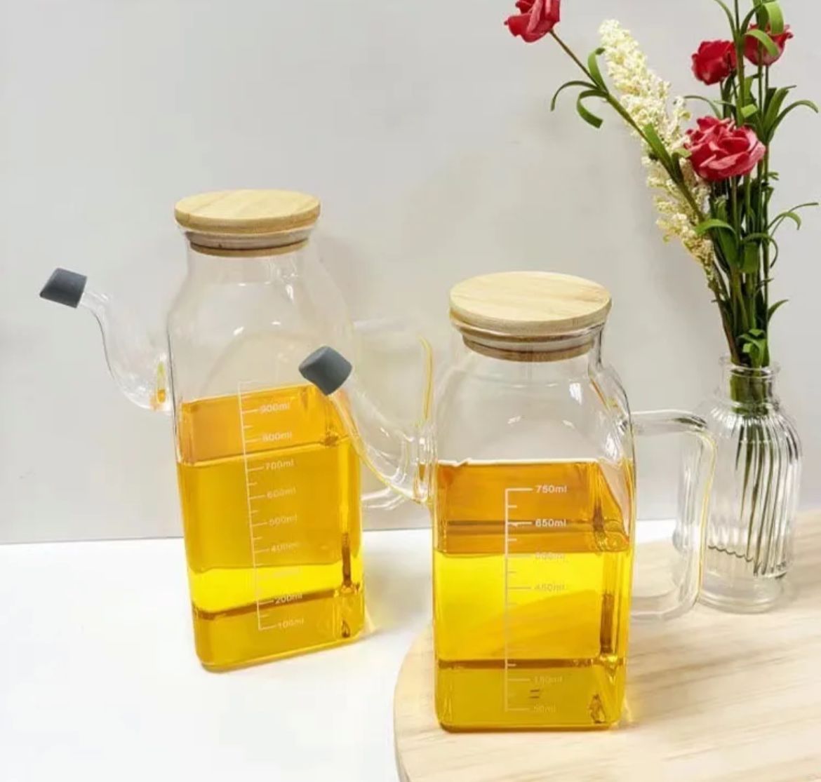 Borasilikat Bambu Kapaklı Yağlık Kare Model 1000 Ml