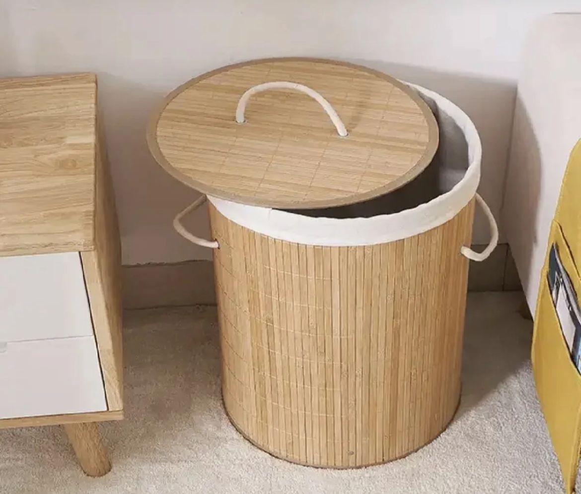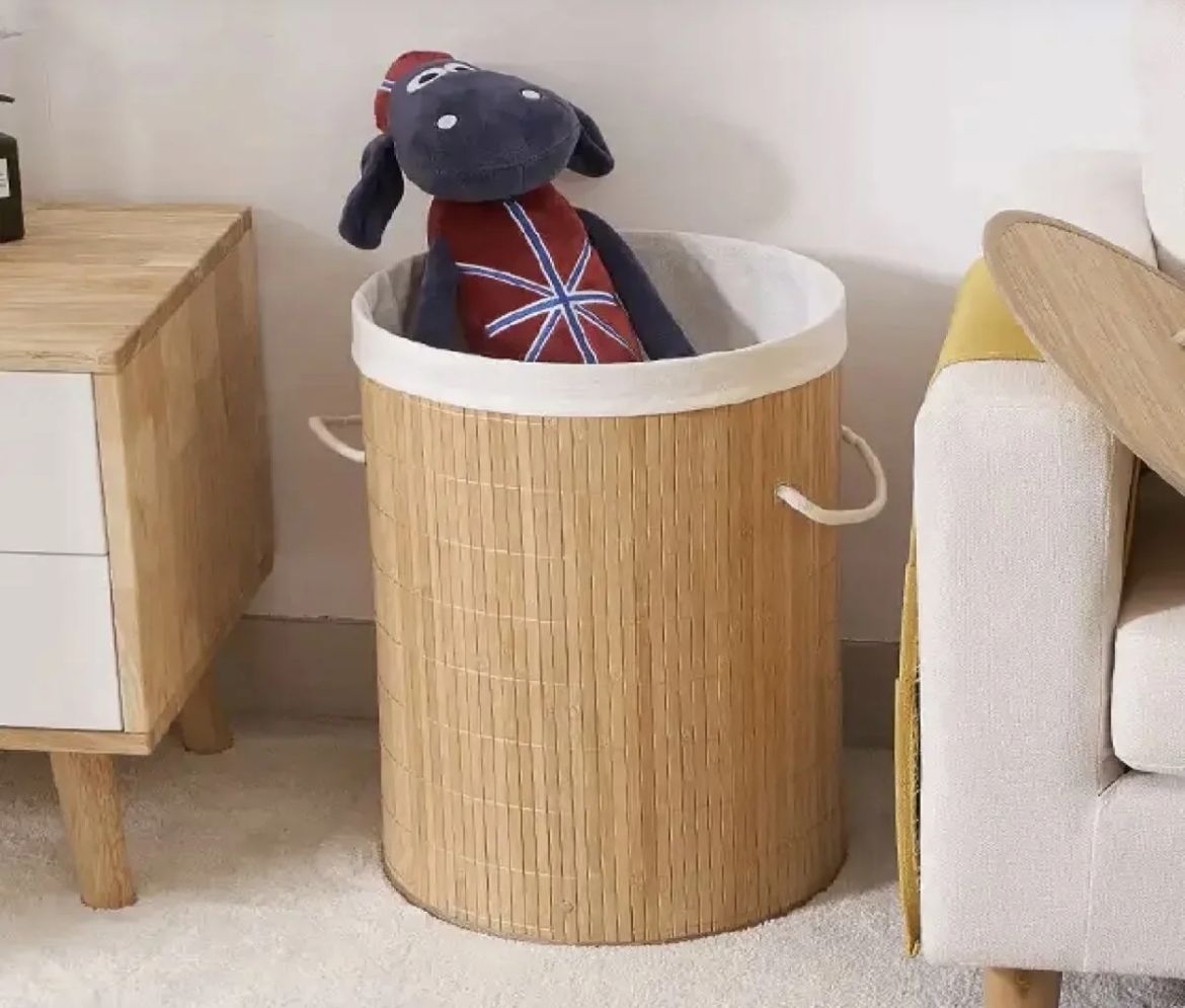 Katlanabilir Bambu Çamaşır Sepeti Yuvarlak 35x50 *15